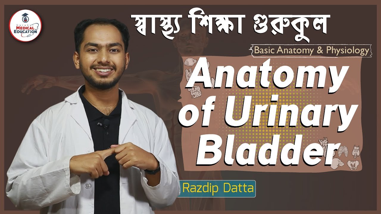 ইউরিনারি ব্লাডার এর এনাটমি আজকের আলোচনা বিষয় |The urinary bladder is a muscular sac in the pelvis, just above and behind the pubic bone. When empty, the bladder is about the size and shape of a pear. Urine is made in the kidneys and travels down two tubes called ureters to the bladder. The bladder stores urine, allowing urination to be infrequent and controlled.ইউরিনারি ব্লাডার এর এনাটমি (Anatomy Of Urinary Bladder) ক্লাসটি বেসিক এনাটমি এন্ড ফিজিওলজি (Basic Anatomy and Physiology) কোর্সের অংশ |