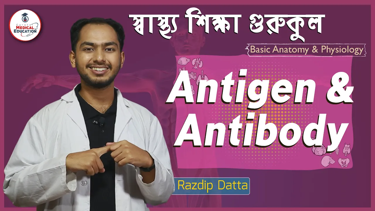 অ্যান্টিজেন ও অ্যান্টিবডি (Antigen & Antibody) বেসিক এনাটমি এন্ড ফিজিওলজি (Basic anatomy and physiology)কোর্সের অংশ |বেসিক এনাটমি এন্ড ফিজিওলজি (Basic anatomy and physiology) কোর্সের প্রায় সকল ক্লাস “গুরুকুল মেডিকেল এডুকেশন (Gurukul Medical Education)” চ্যানেলে রাখা হয়েছে, বাংলাদেশের “স্বাস্থ্য শিক্ষা (Medical Education)” খাতের উচ্চ মাধ্যমিক স্তরের শিক্ষার্থীদের জন্য।